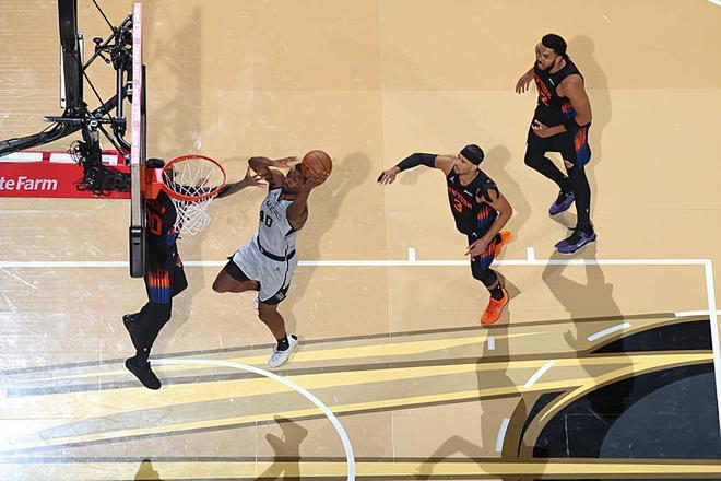 本场比赛中,马刺的先发锋线球员哈里森-巴恩斯(Harrison Barnes)的表现还是差了一些的,依然是没有发挥出自己应有的水准。巴恩斯全场出场23分28秒,投篮9中4,三分线外4中0,罚球3中3,得到了11分3篮板2助攻1抢断1盖帽的数据,正负值为+4。巴恩斯在本场比赛中又一次进入了隐身状态,他在外线投篮方面的特点并没有发挥出来,他在进攻端的贡献度非常有限,并没有得到太多的分数,也没有起到应该起到的作用。不仅如此,巴恩斯在防守端的表现也是比较一般的,同样是缺乏足够的存在感。从比赛的总体情况来看,巴恩斯的表现真是太平庸了一些,与大家对于他的期望值有着巨大的差距。也是因为整体表现不太理想,巴恩斯也是没有办法得到更多的信任,他的出场时间也是非常有限的。