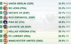五大联赛转换阶段进攻占比:柏林联合最高,曼联排名第九