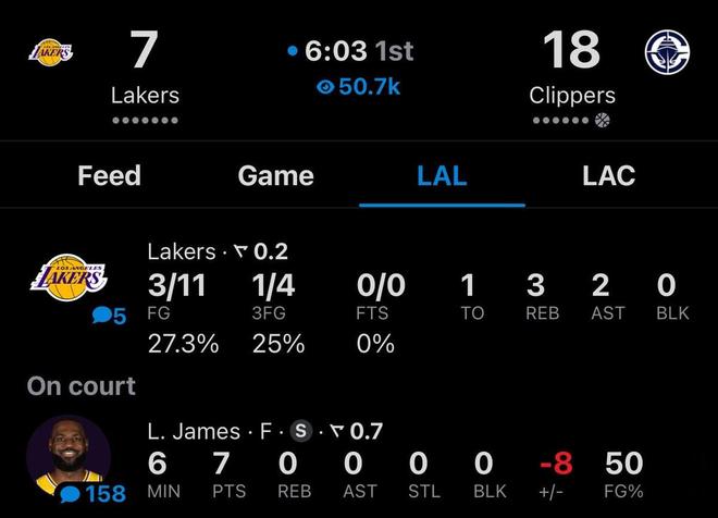 遭遇西部倒一全力船?首节过半湖人仅得7分且全由詹姆斯所得