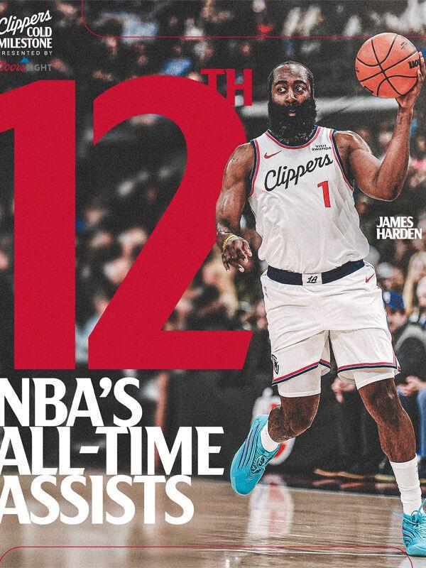 里程碑时刻!哈登生涯总助攻数升至历史第12